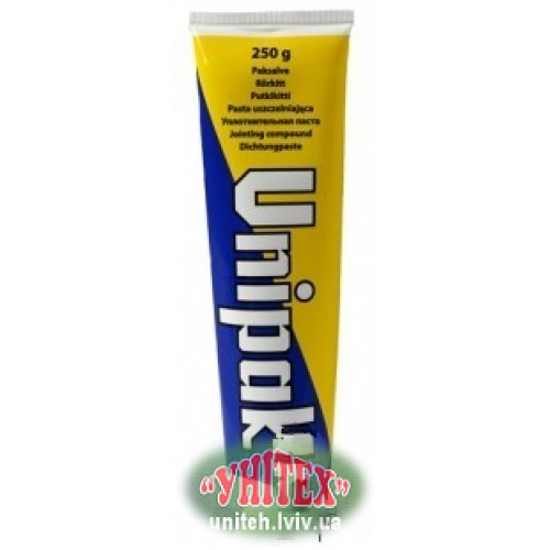 Ущільнююча паста фірми «UNIPAK» представляє собою сіре, високов'язкі речовина. Усі вхідні до складу компоненти допускаються в якості присадок у харчових продуктах.ПРІМЕНЕНІЕПаста «UNIPAK» застосовується разом з льоном або ущільнюючим лляним шнуром для ущільнення різьбових з'єднань в трубопровідних системах для гарячої та холодної води, а також пара під низьким тиском. Паста забезпечує абсолютну герметичність з'єднання, а також, (на відміну, наприклад, від ФУМ стрічки) більшу гнучкість при регулюванні трубних з'єднань. Кут можливої ​​юстування з'єднання не менше 45 ° без втрати герметичності. Застосування пасти «UNIPAK» дозволяє в майбутньому легко демонтувати різьбові елементи обладнання.